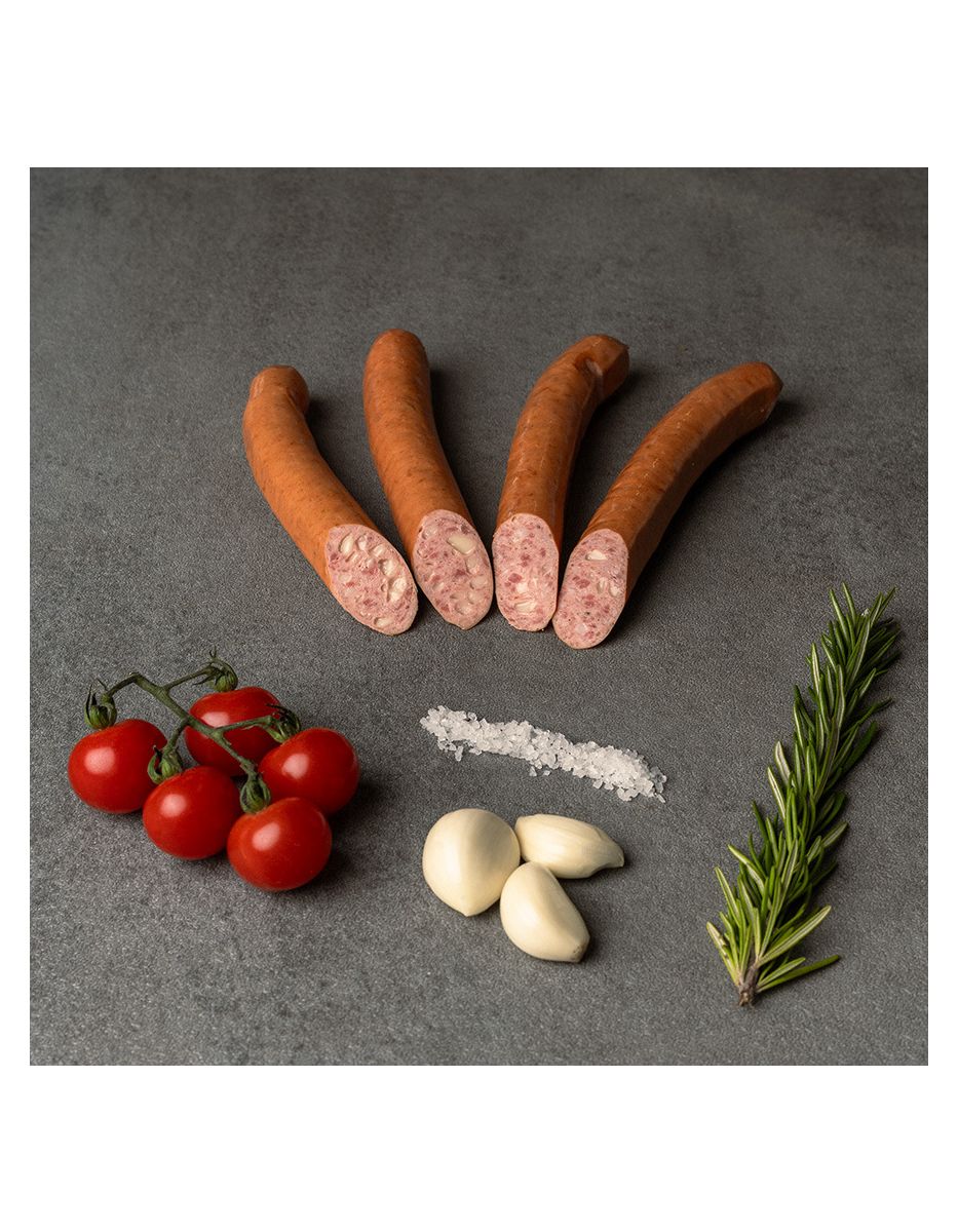 Rindfleisch 64%,Rinderfett, Trinkwasser, Emmentaler, Hochwertiges Rapsöl, Meersalz mit Nitrit, Zucker, Diphosphate, Triphosphate, Würze, Gewürze, Gewürzextrakte, Dextrose, Vitamin C, natürliches Aroma, Glucosesirup, Würze, Naturdarm, Rauch