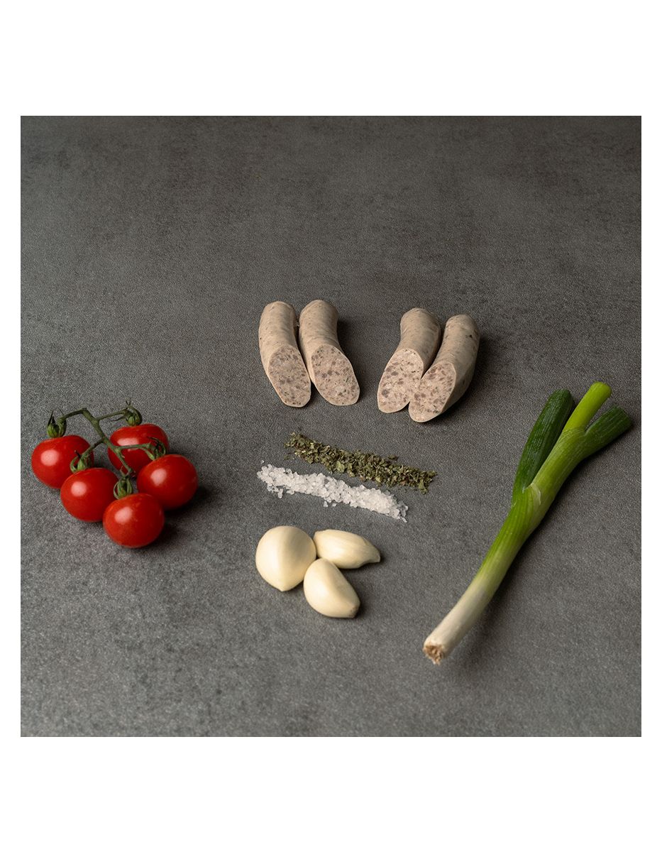 Rindfleisch 78%, Trinkwasser, Hochwertiges Rapsöl, Meersalz, Dextrose, Glucosesirup, Gewürze, Gewürzextrakte, Kräuter, Aroma, Zironensaft, Naturdarm